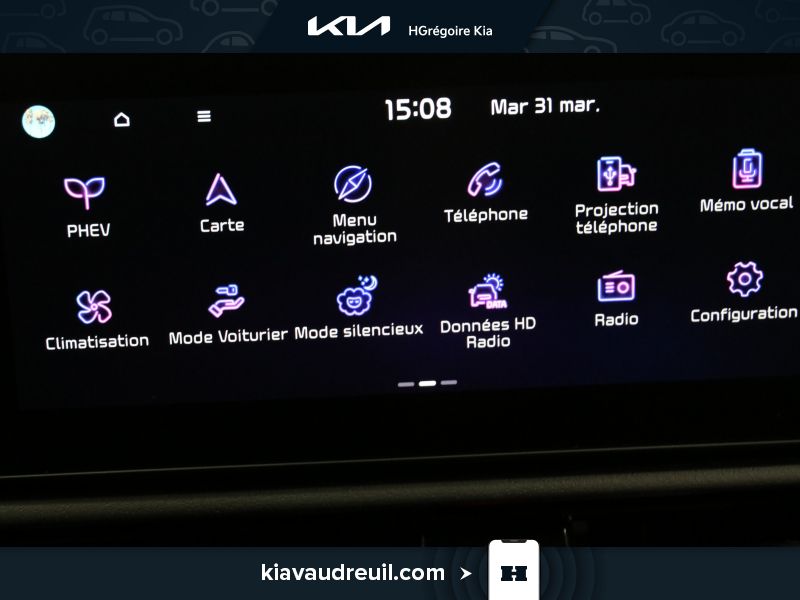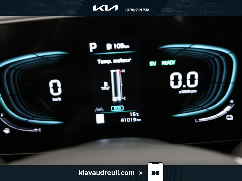 Instruments -comprend : indicateur de vitesse, odomètre, température du liquide de refroidissement du moteur, tachymètre, niveau de charge de la batterie de traction, consommation et récupération d’énergie, compteur journalier et ordinateur de voyage